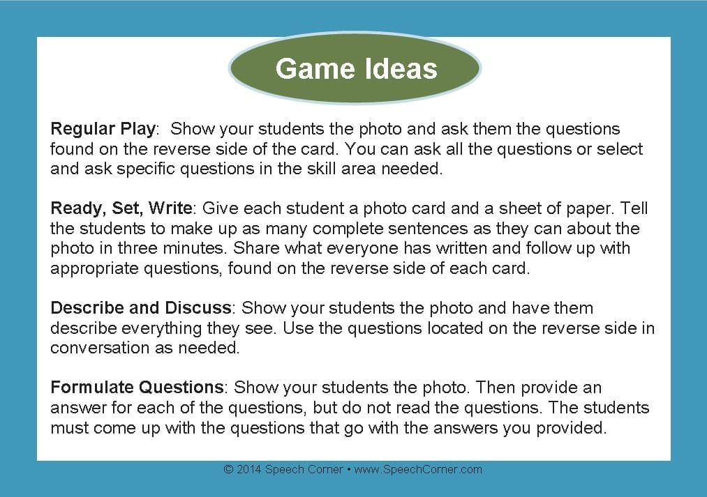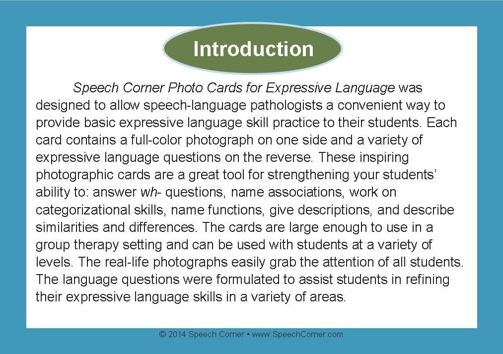 Designed for versatile use across your caseload, Speech Corner Photo Cards for Expressive Language help students strengthen foundational communication skills through real-life photo stimuli and structured questioning. Each full-color card is a powerful tool for building expressive vocabulary, descriptive language, and verbal reasoning.