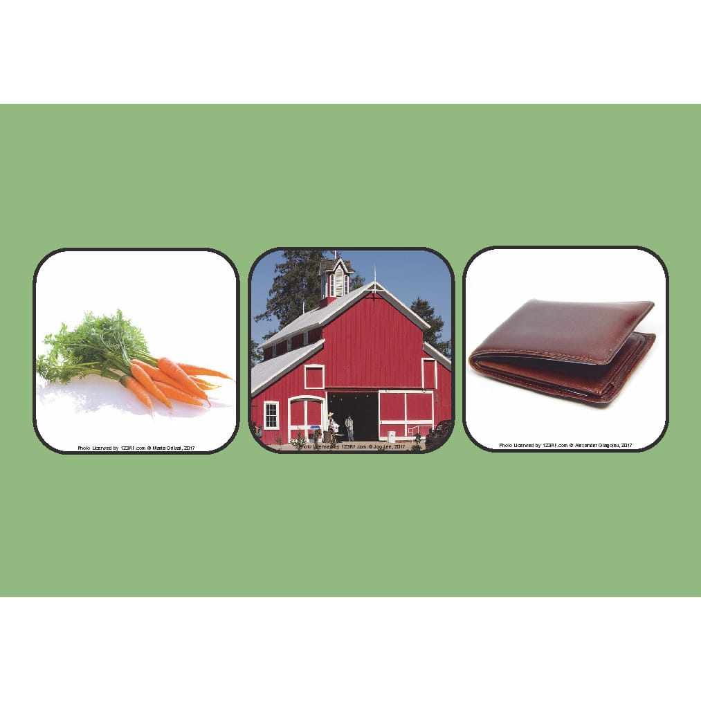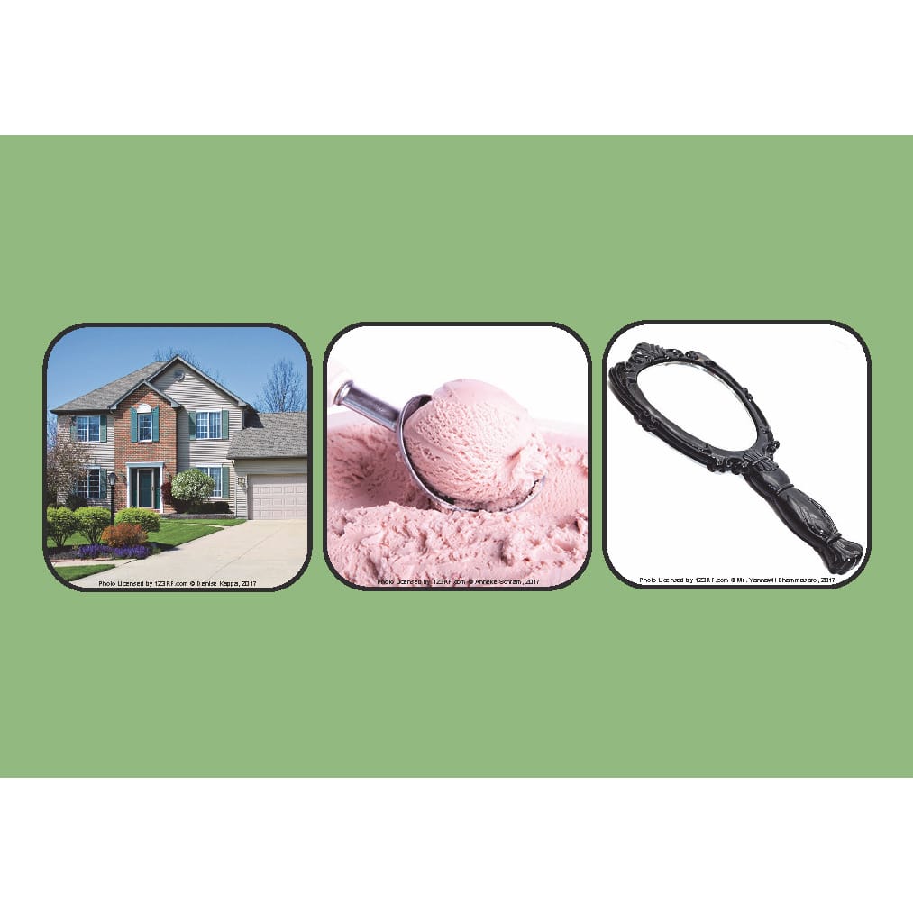 • Duplicate card sets allow for modeling, matching, and turn-taking