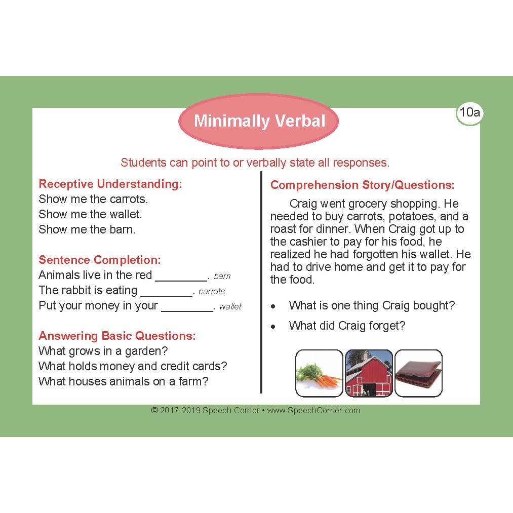 Designed specifically for pre-, non-, or minimally verbal clients, the Speech Corner Photo Cards for Minimally Verbal Individuals offer a rich, flexible resource that supports communication growth through visual engagement and targeted questioning. Each pair of cards opens a door to expressive and receptive language success—whether through pointing, gestures, AAC, or emerging vocalizations.