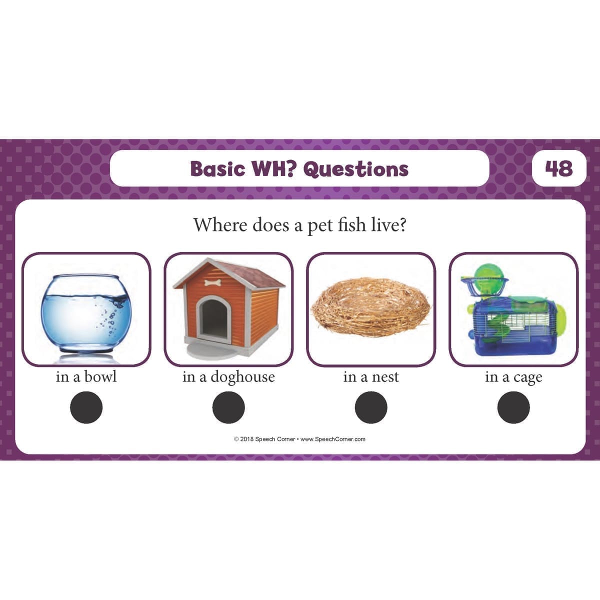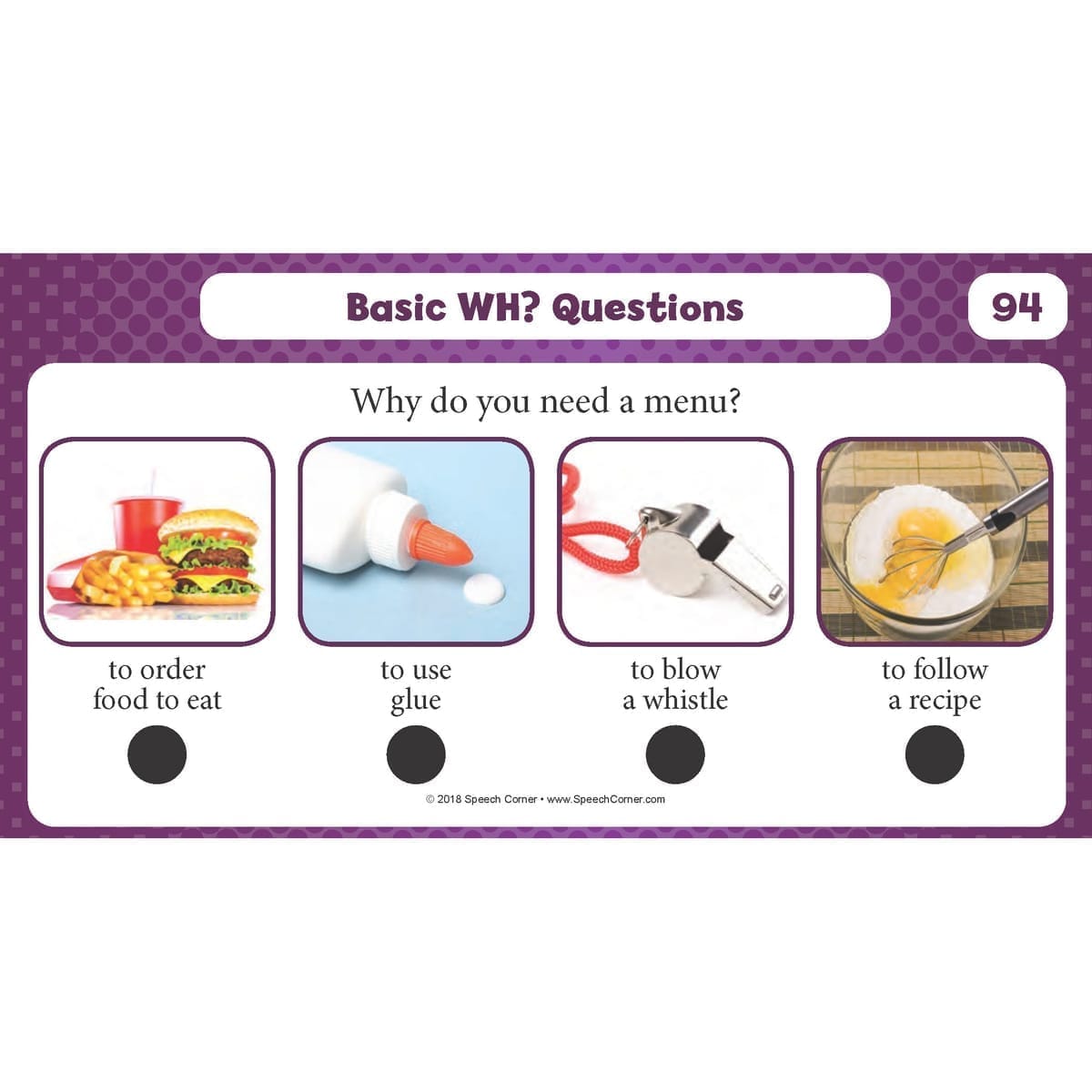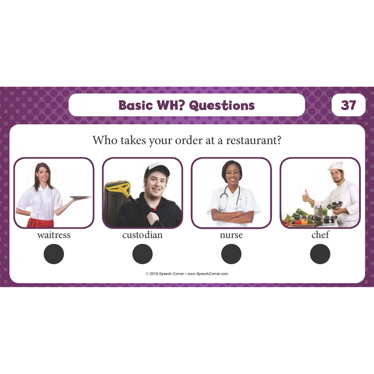 Each card includes four vibrant photographs for answer selection, making it accessible and engaging for non-readers.