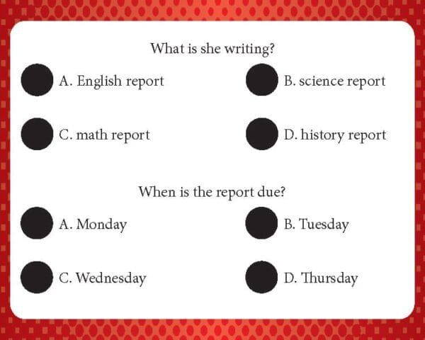 - Interactive Responses: Students press the Spot On! Pen to the answer dot on the card.