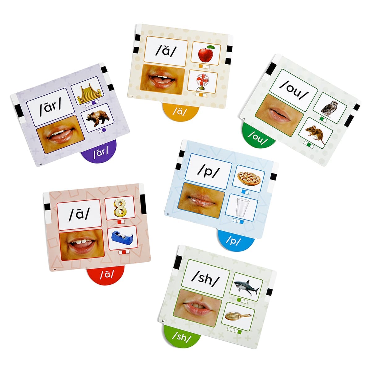 • Interactive Phoneme Cards: Photos, mouth positions, and letter sounds guide practice