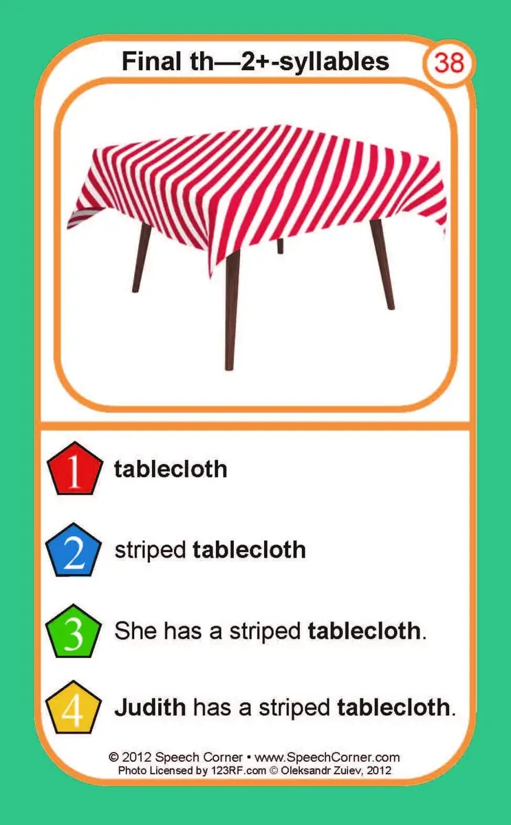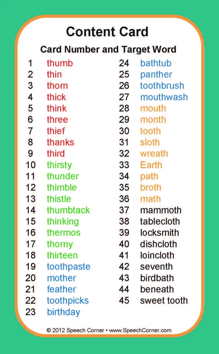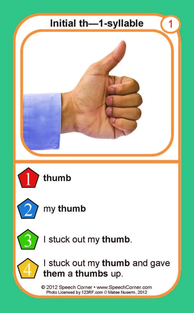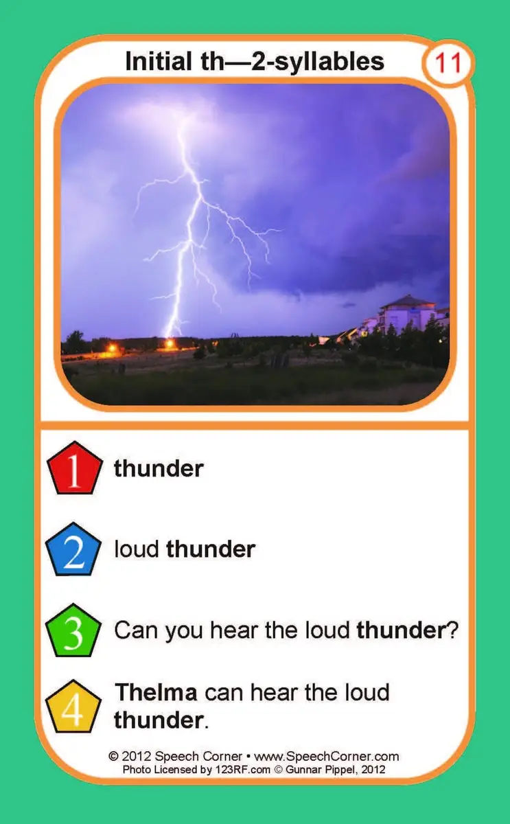 45 large-format playing cards with “th” target words and colorful photographs