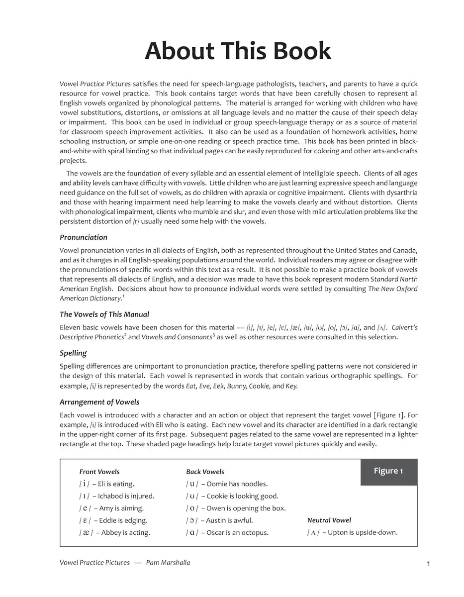 A grab-and-go drill book for vowel work across ages and levels. Vowel Practice Pictures features 375 carefully selected words organized from simple → complex by syllable shape and phonological pattern—perfect for quick, targeted practice in therapy, small groups, or home programs.