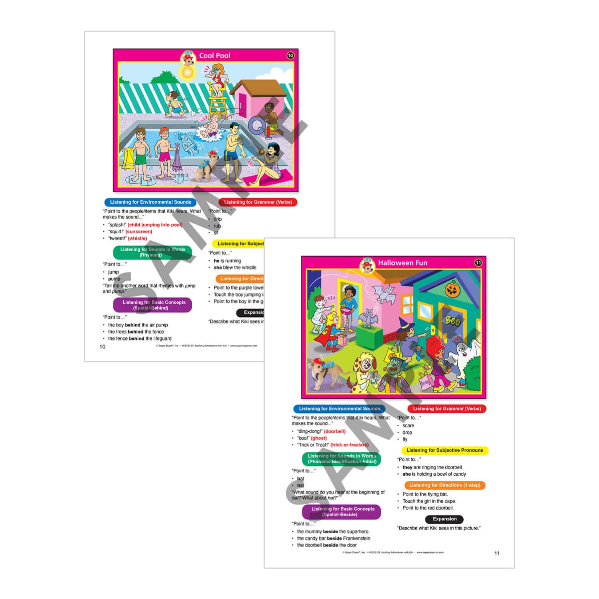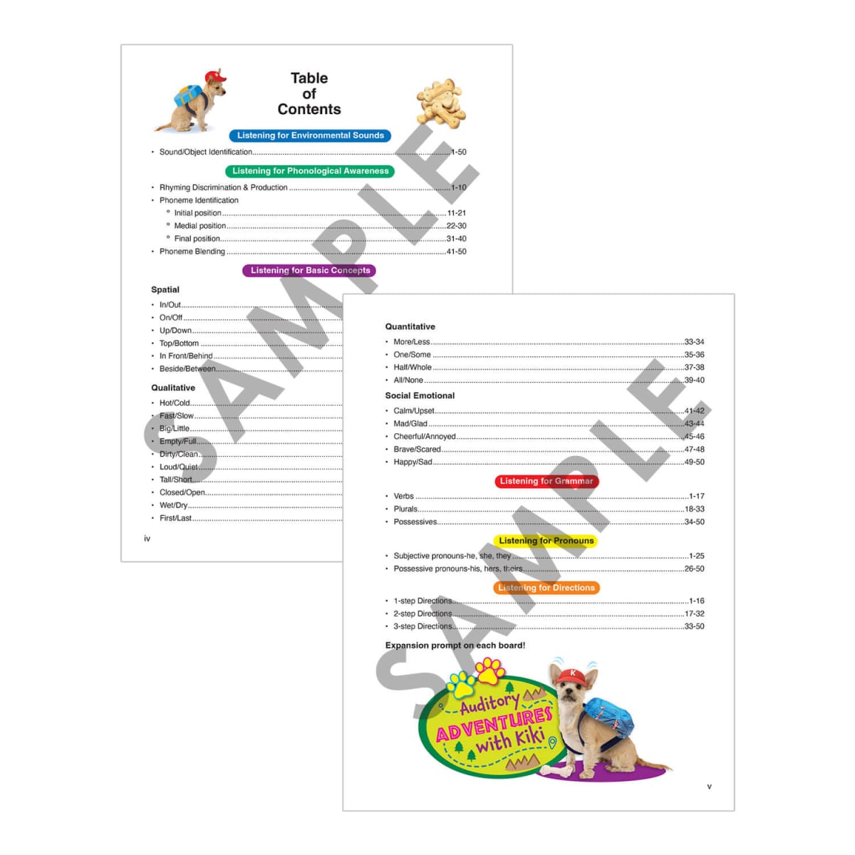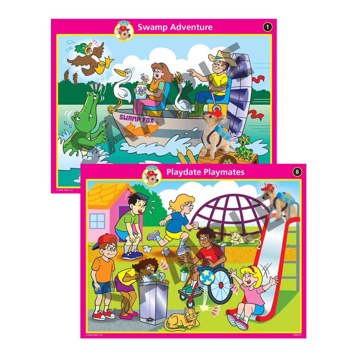 Kiki, a playful Cairn Terrier–Chihuahua mix, loves to go on exciting adventures—and she’s bringing your students along! With 25 double-sided boards (50 picture scenes), children can explore the zoo, farm, library, playground, and more while practicing essential listening and language skills. Just choose a scene, read the prompts from the Instruction Booklet, and ask: “Can you hear what Kiki’s ears hear?”