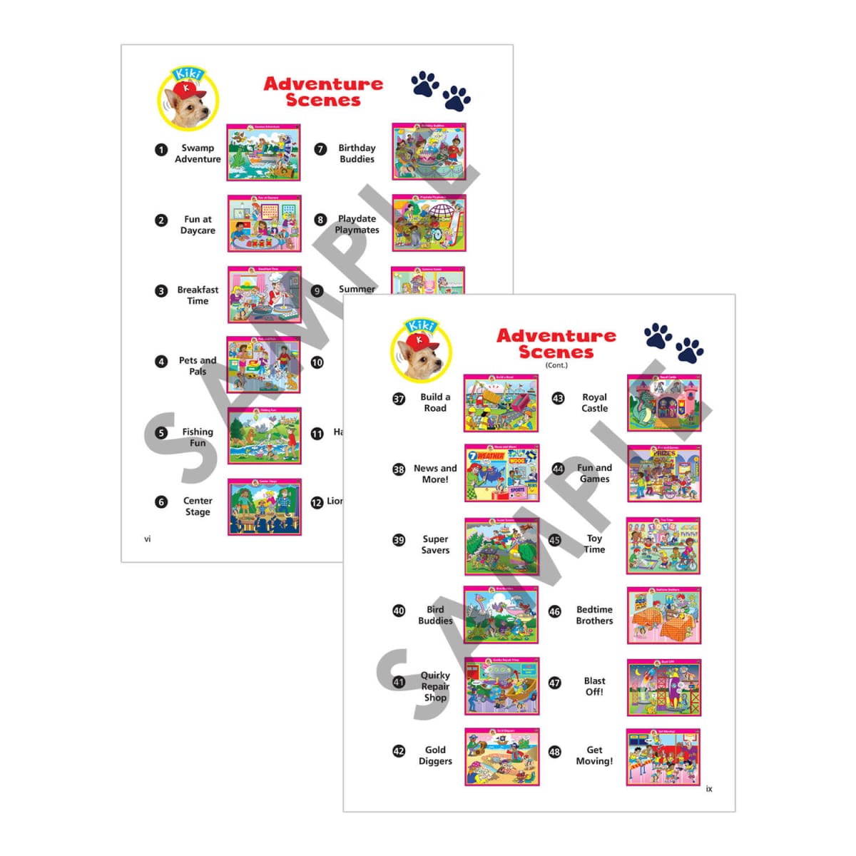 ✔️ 25 double-sided boards (50 picture scenes, 8½” x 11″)