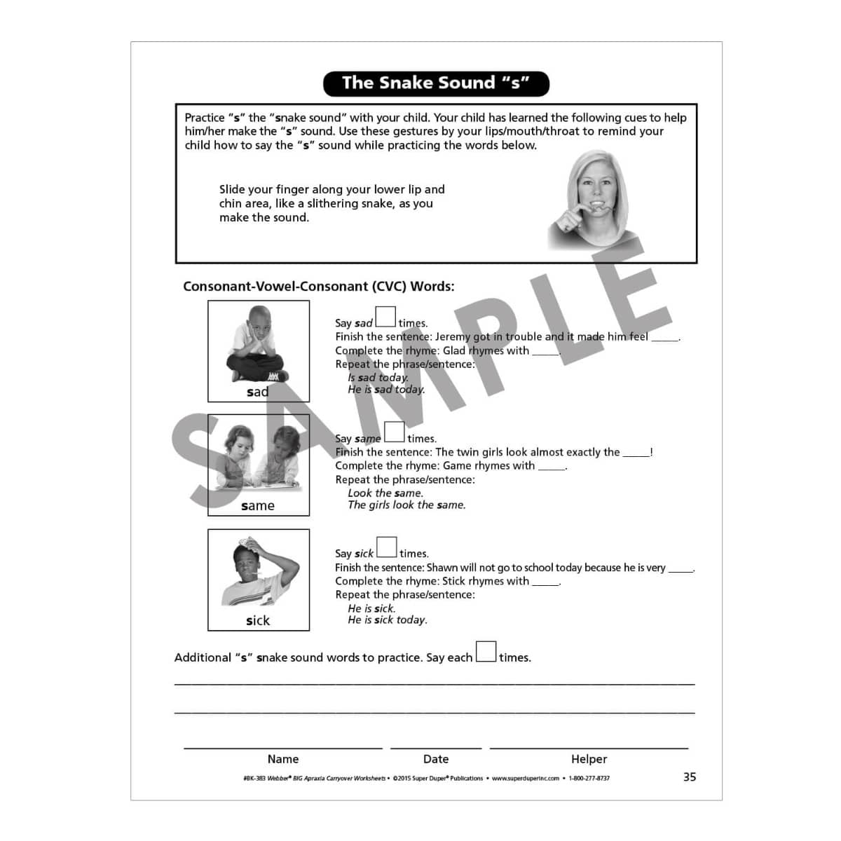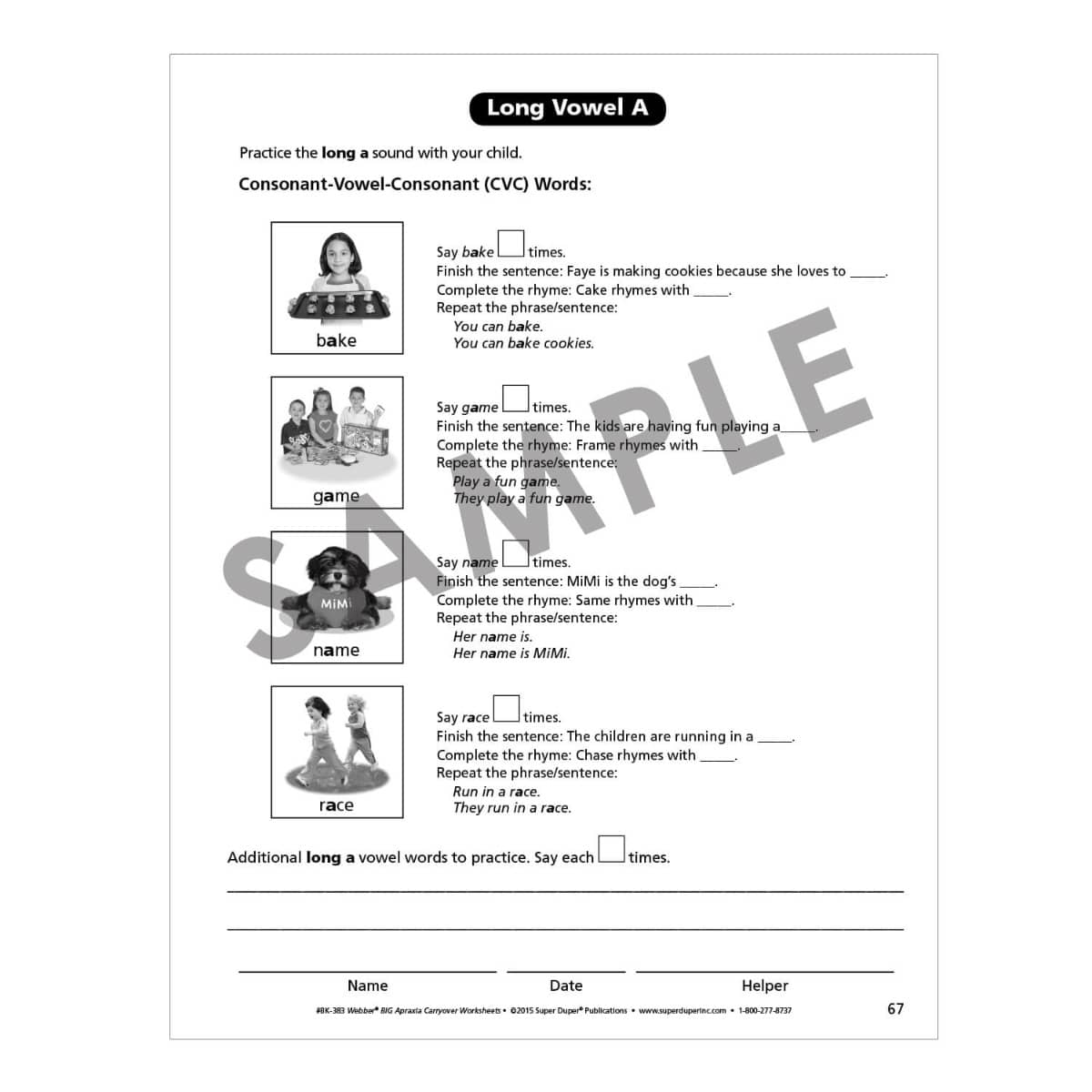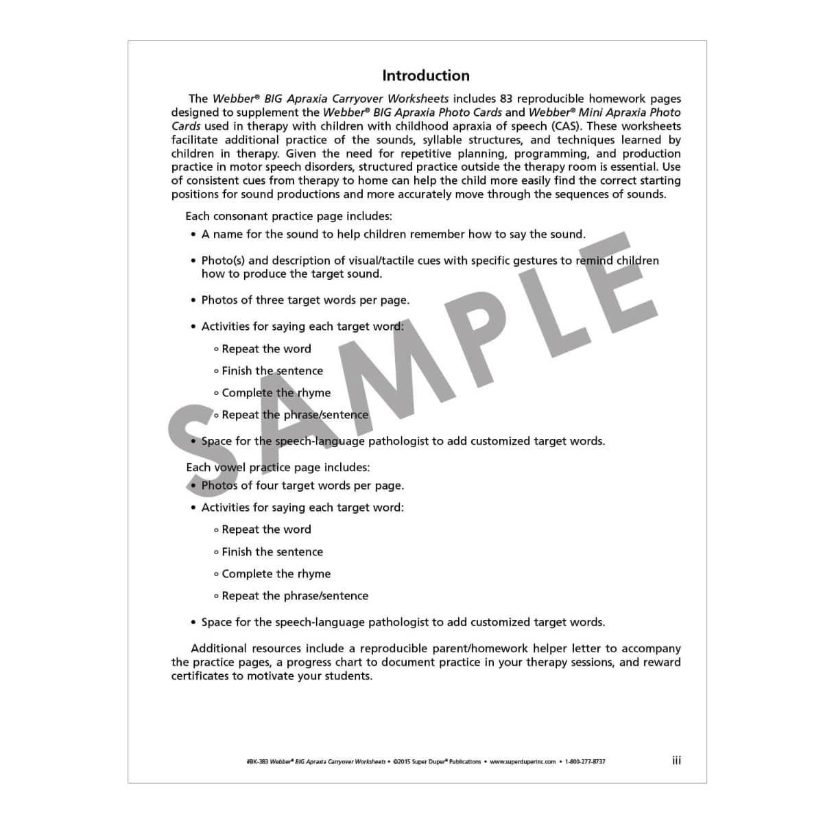 Extend speech practice beyond the therapy room with Webber BIG Apraxia Carryover Worksheets! These reproducible homework pages give students systematic and repetitive practice with the same photos used in Webber BIG Apraxia and MINI Apraxia Photo Cards—ensuring consistency between therapy sessions and at-home practice.