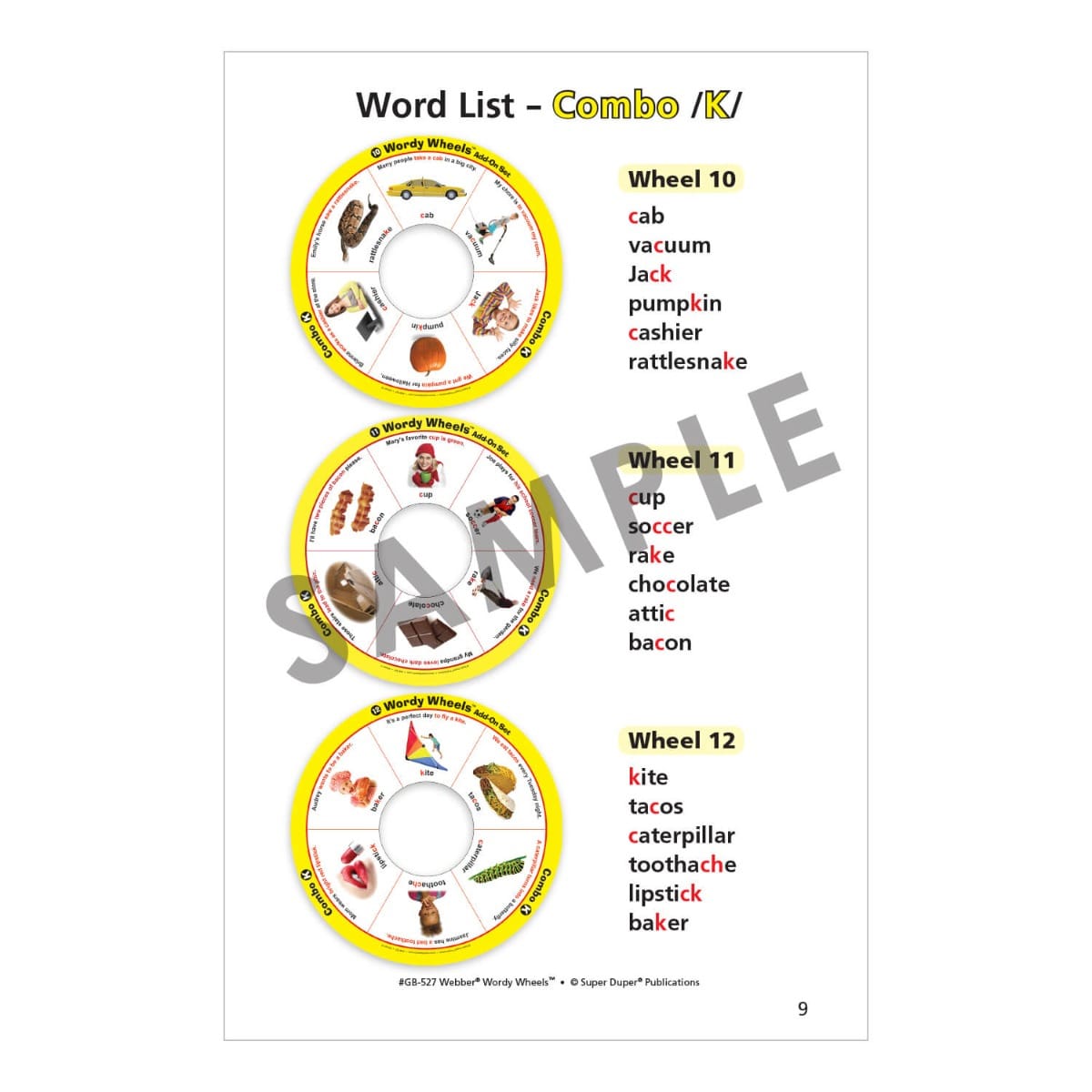 - K – 12 wheels … 3 Initial, 3 Medial, 3 Final, and 3 Combo