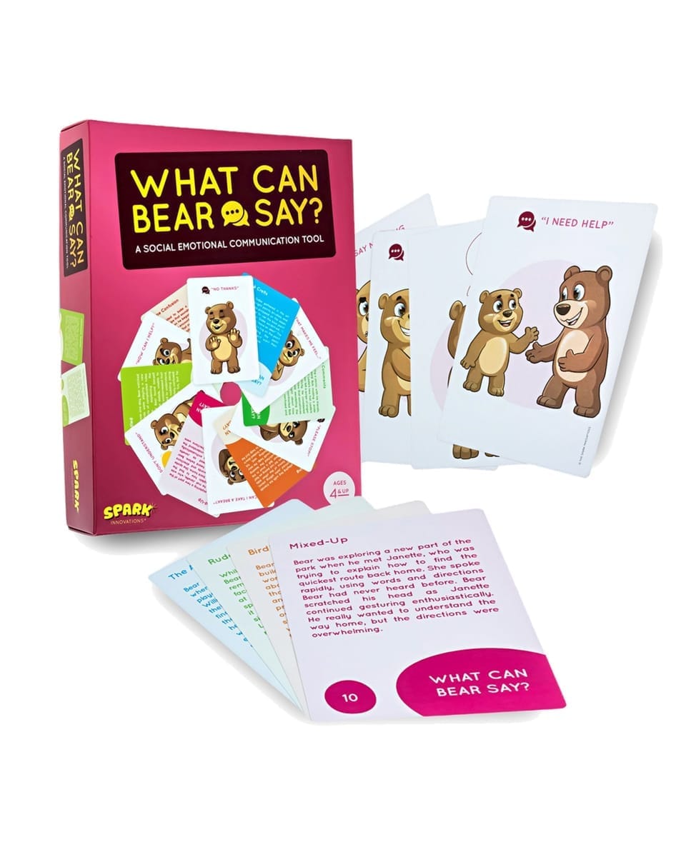 - Interactive Social Learning: Read a story scenario, identify Bear’s feelings, and choose a helpful response using the Bear cards