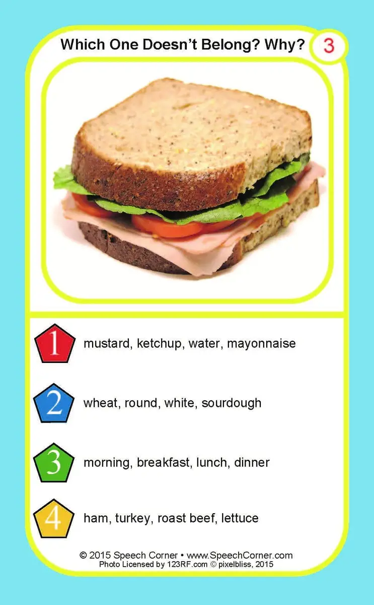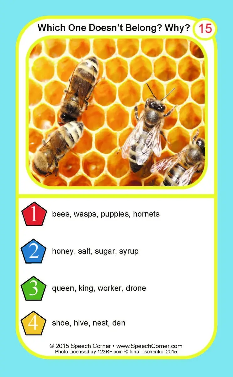 5. Respond – The student names the item that doesn’t belong and explains why.